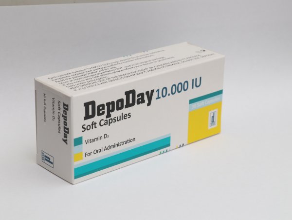 Təsiredici maddə: Hər kapsulda 50 000 BV (1250 mkq D 3 vitamininə ekvivalent) xolekalsiferol vardır. ATC kodu: A11CC05. DepoDay 50.000 BV yumşaq kapsullar vitamin D-in defisiti və çatışmazlığının müalicəsində (həftəlik yükləmə sxemində), eləcə də profilaktikasında təyin olunan dərman vasitəsidir.